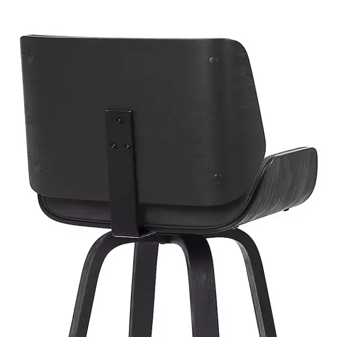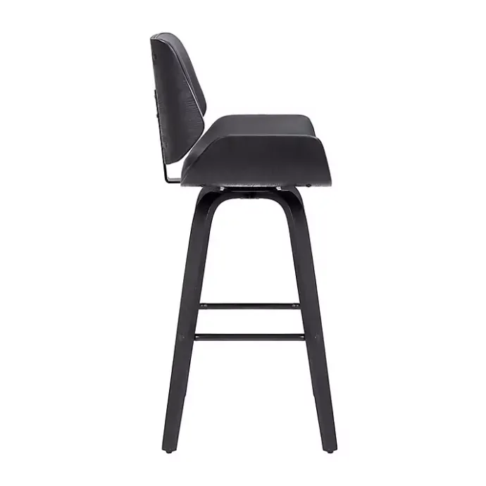 Grab a seat with this Gray Faux Leather Tyler Swivel Bar Stool! You’ll love this stool for its comfort and style. The gray faux leather and black base gives it a sleek, modern look!