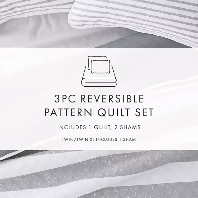 Go from chic, fresh stripes to an understated solid style with this Gray Striped Reversible 3-pc. Queen Quilt Set. You’ll love being able to switch up your bedroom on a whim!