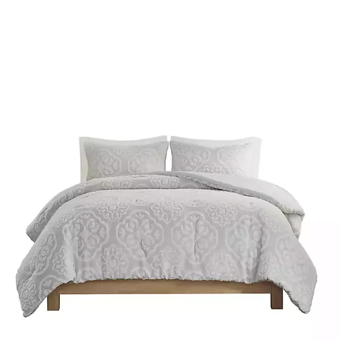 This shabby chic Madison Park Maeve 3-pc. Full/Queen Comforter Set features a tufted medallion pattern on top of tightly woven threads, giving it texture and dimension!