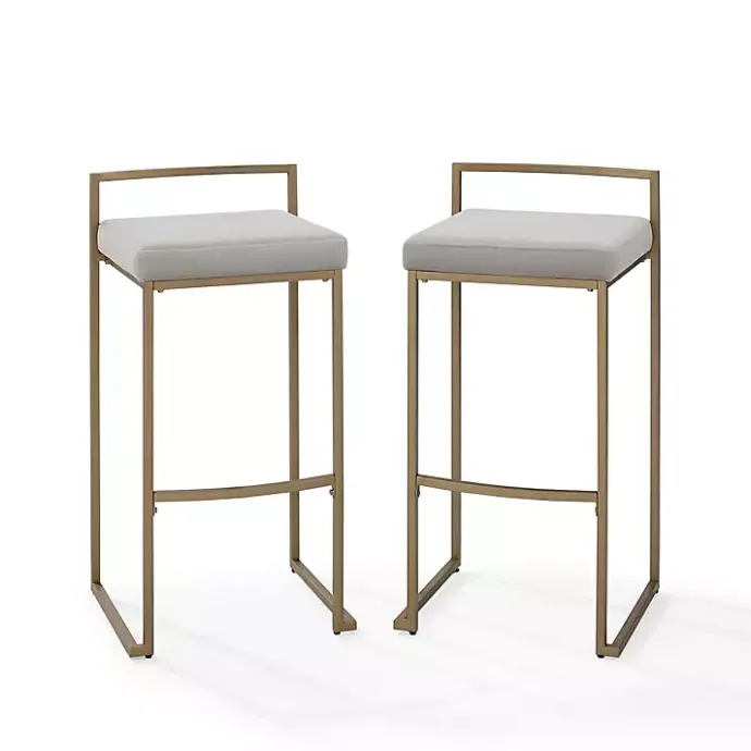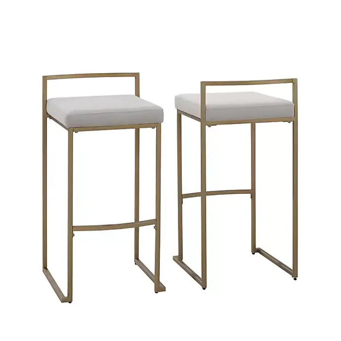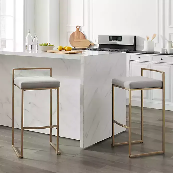 Our Marley Gray and Gold Bar Stools adds style and glamour to your kitchen! The gold metal frame and low open back makes these stools a modern work of art.
