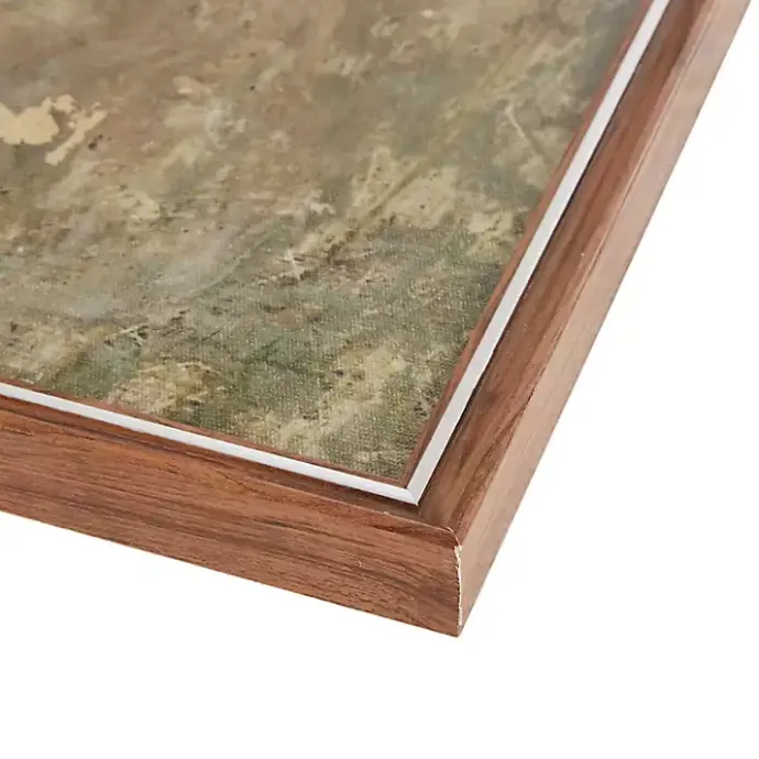 - Brown frame around wrapped canvas