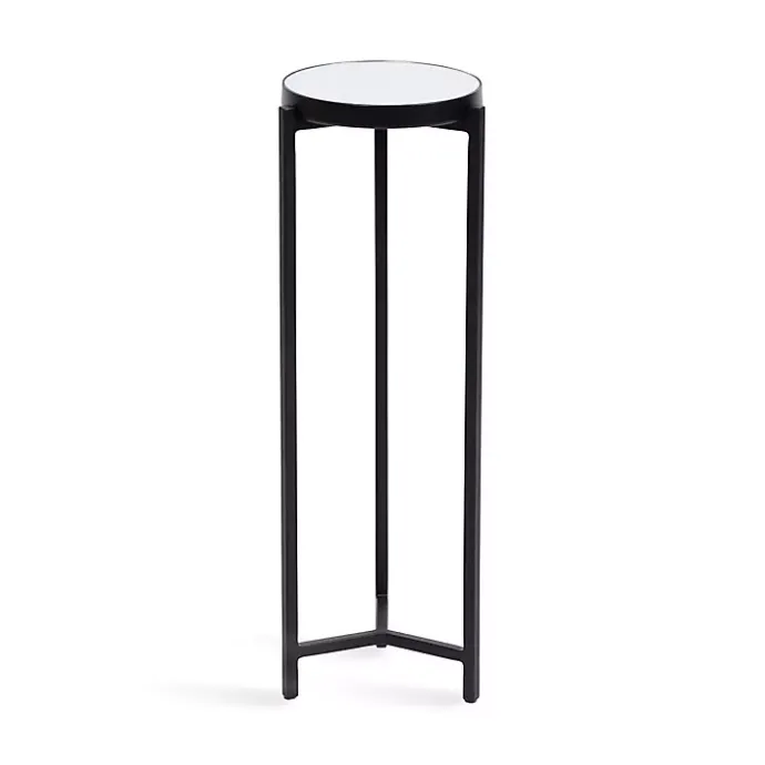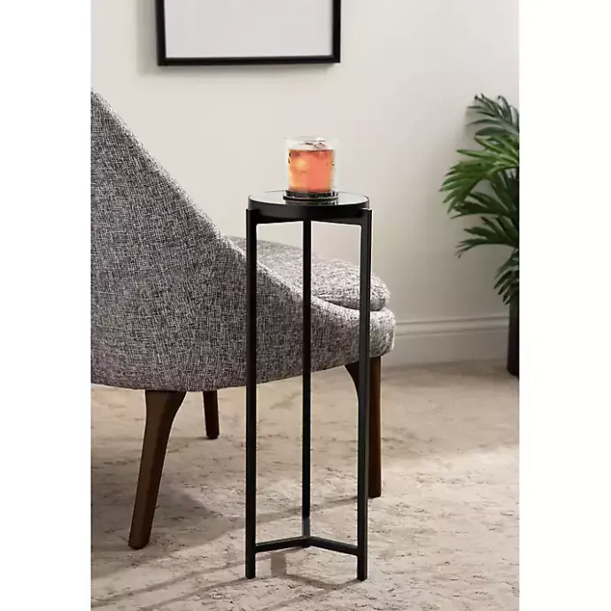 Inspired by modern design, this Black Metal Mirrored Tabletop Aguilar Drink Table features a frame with clean, simple lines and a satin black finish. This drink table is crafted with a unique mirrored tabletop and sturdy metal frame to serve as a quality, refined accent piece.