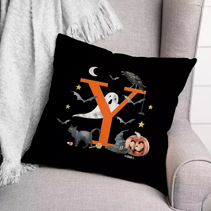 This Monogram Y Halloween Indoor/Outdoor Pillow will add a creepy, custom touch to any space! Let its adorable, spooky creatures haunt your home this Halloween.