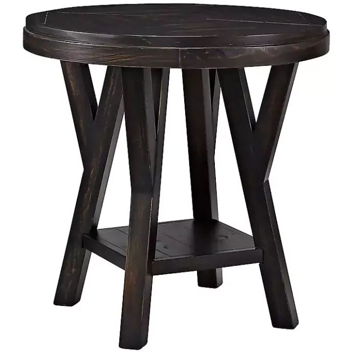 The Round Black Wood Flared Base Side Table boasts a bold, transitional look that is sure to make a statement. Its distressed finish beautifully highlights the pine grain while adding vintage character to your space.