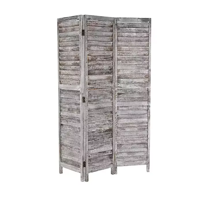 Accent your home with this Rustic Gray Shutter Trifold Room Divider! This folding divider features a rugged, farmhouse charm, designed to add depth and visual interest while it functions as a privacy screen in your space.