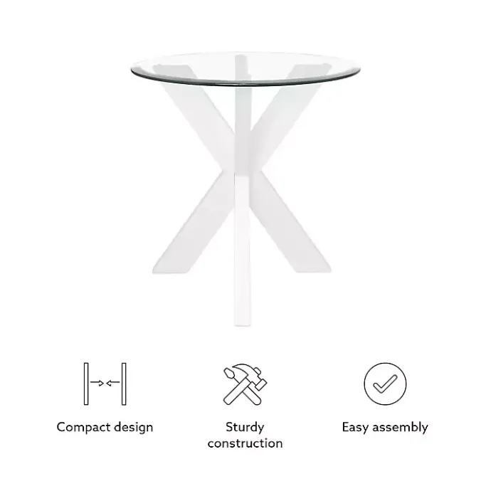 The White Wood and Glass Top X-Base Accent Table will bring bold, contemporary character into your space! The crisscross base contrasts the polished glass top, resulting in an eye-catching statement.