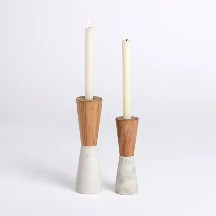 Hot Kirklands Home Wood & Marble Taper Candle Holders, Set of 2