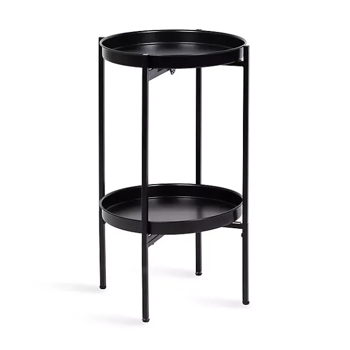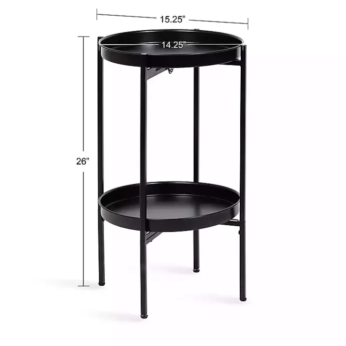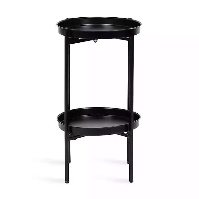 This Black Round Metal 2-Tier Cienna Accent Table features a foldable base and works as a full-time side table next to your favorite sofa or chair! Fold it up and take it with you, and you’ll be ready to serve in a variety of settings and uses.