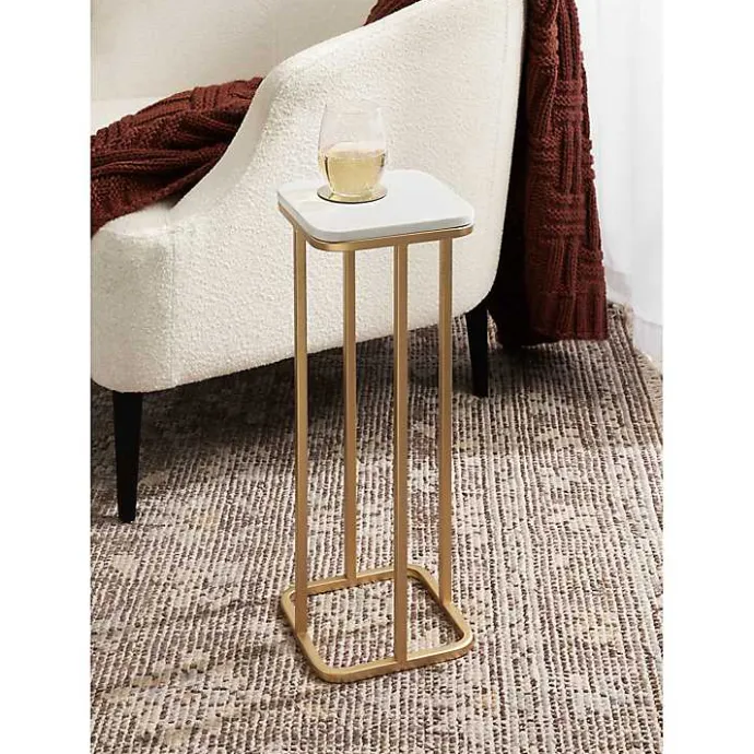 For the interior decorator with a passion for modern design comes this Gold and White Credele Accent Table. It features cultured marble tabletops, crafted with intricate detailing reminiscent of traditional Roman architecture.