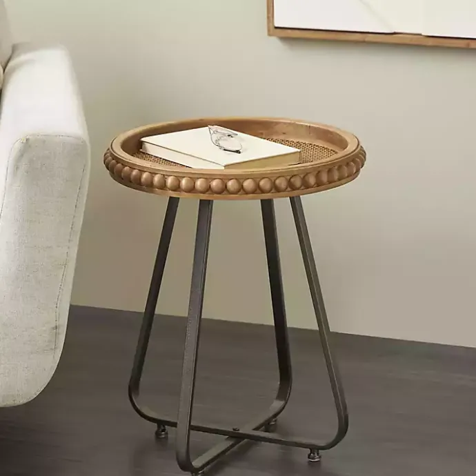 Give your space a boho chic touch with this Beaded Wood Rattan Round Accent Table! Featuring a unique blend of materials and eye-catching details, this table is perfect for accenting your home.