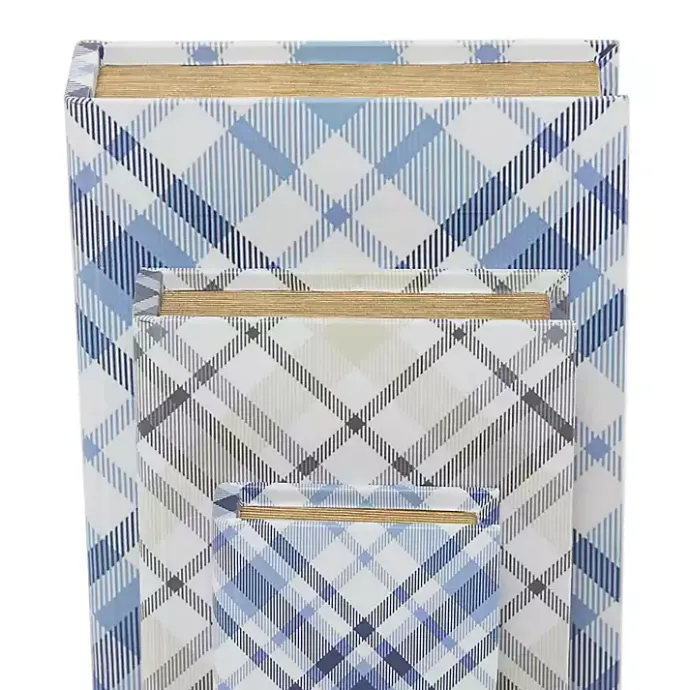 Embellish your bookshelf or coffee table with these Blue and Gray Plaid Book Boxes. They offer a concealed and stylish way to store your belongings and stay organized!