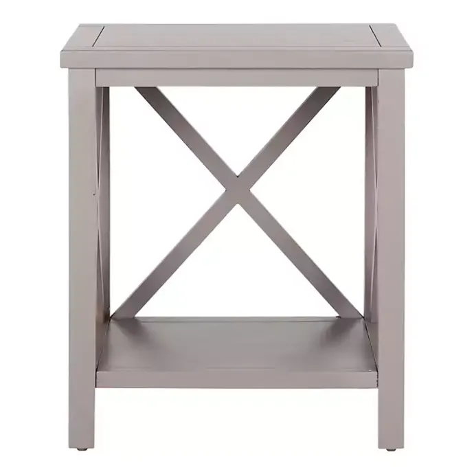 This Gray Candice Cross Back Accent Table would look great sitting by your leather couch! The bottom shelf has plenty of space that provides extra storage and add to the industrial look.