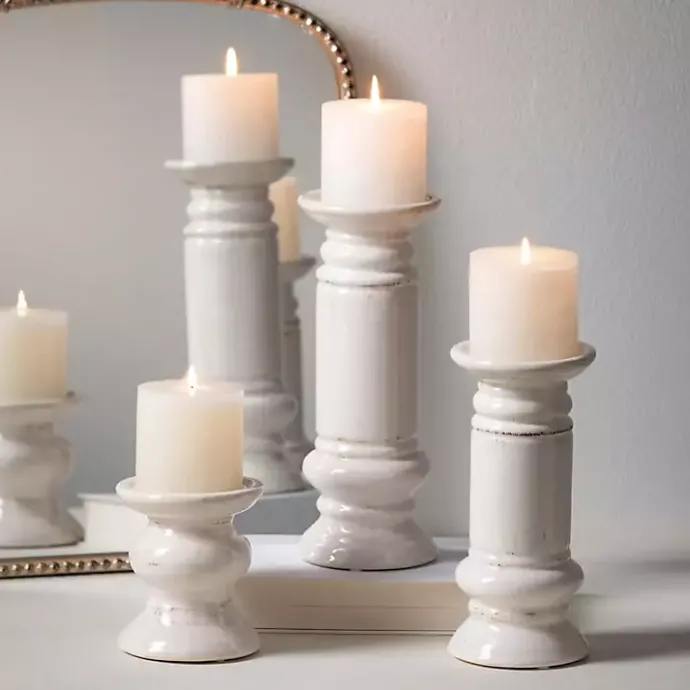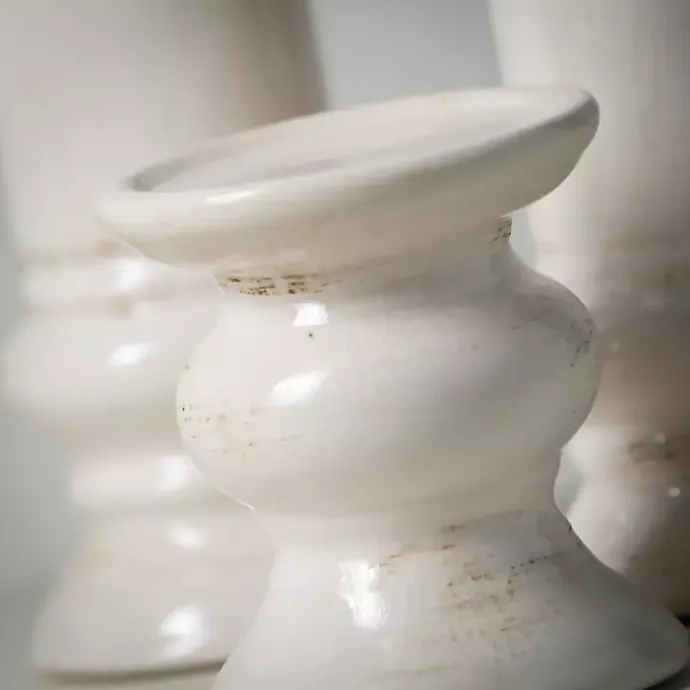 Make your sense of style glow in a lovely way! Our Ivory Ceramic Column Pillar Holders feature a subtly distressed finish that’s perfect for any corner of your home.