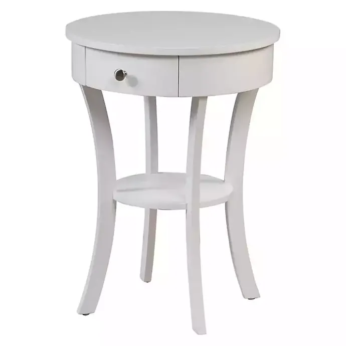 Incorporate stylish storage into your space with this White Curved Legs Round Drawer Accent Table! This sleek accent table has a drawer for storage and a lower shelf for displaying your favorite home decor.