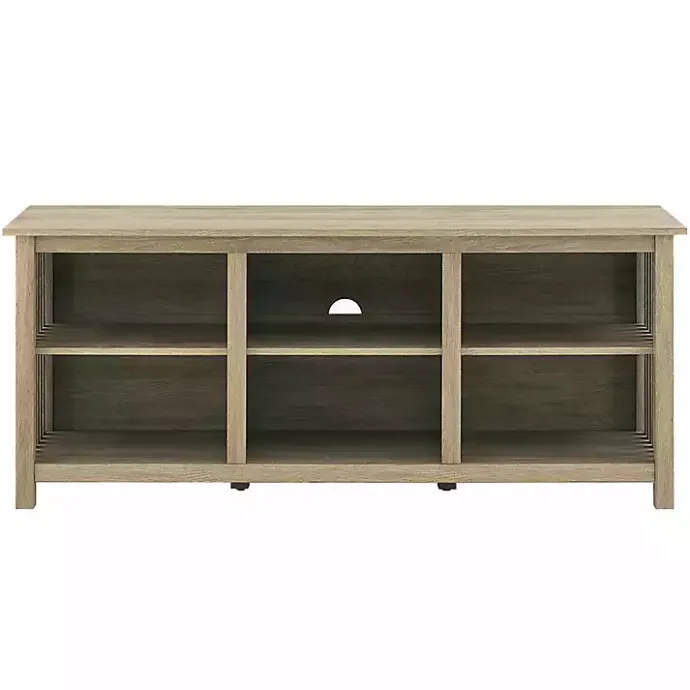 Entertain in traditional mission style with this Driftwood Slatted Sides Media Cabinet. The six spacious cubbies are perfect for storing books or displaying home décor. Keep your tech nice and tidy with the cord management ports. With its versatile silhouette, this piece will remain a staple as your style evolves.