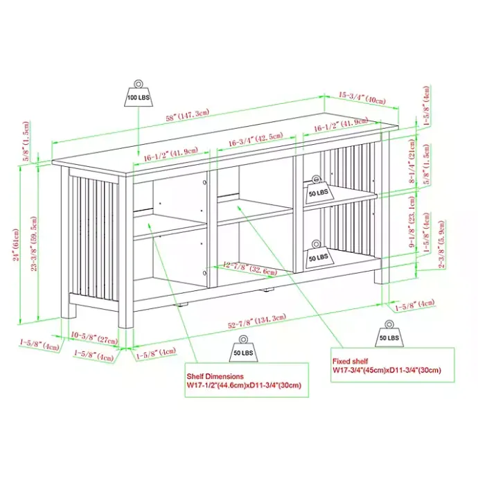 - Two (2) adjustable shelves and one (1) fixed shelf for customizable storage