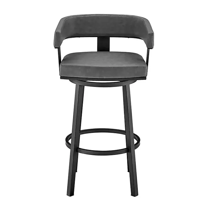 Bring modern style to your kitchen with this Gray Faux Leather Lorin Swivel Counter Stool! You’ll love the sleek look of the gray faux leather upholstery and black metal base. It’s perfect for effortlessly updating your counter space!