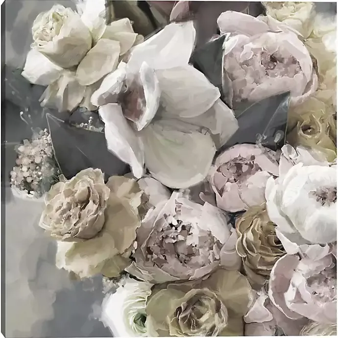 Bring a romantic feel to your space with our regal Gold Blushing Blooms Canvas Art Print! The muted hues of pink and gray create a stunning botanical display.