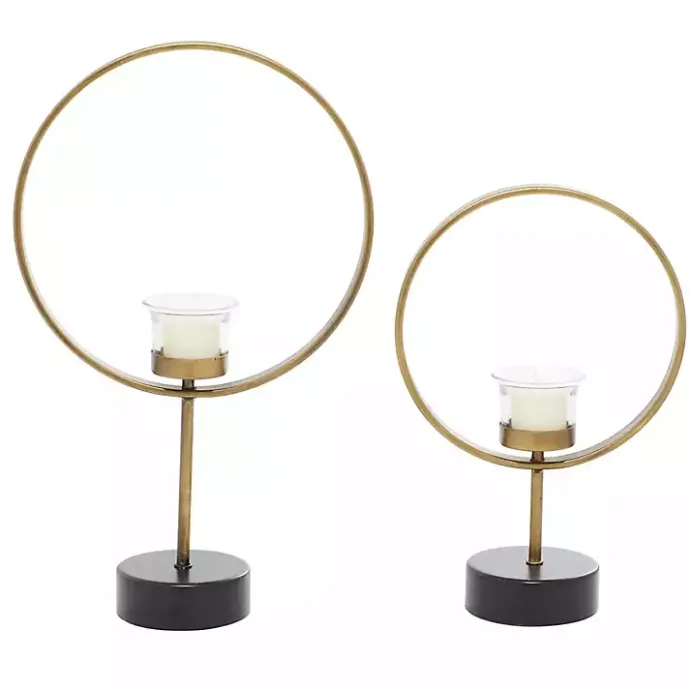 Add unique style to your space with this eye-catching set. The Golden Halo 2-pc. Candle Holder Set will complement any well-decorated living space.