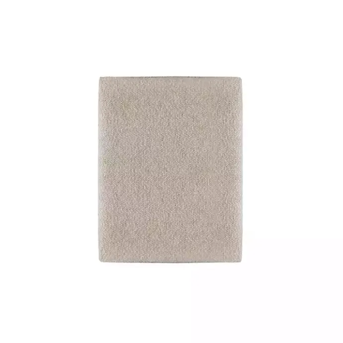 - Upholstered in gray linen-like fabric