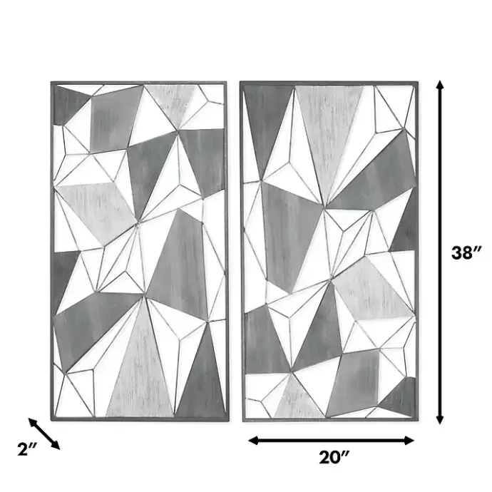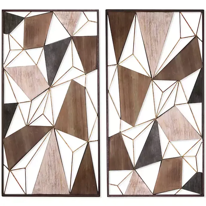 Angular shapes, gold metal accents, and a variety of wood finishes are perfectly balanced in these Lucas Geometric Wall Plaques. Style this transitional set as a centerpiece for your living room wall.