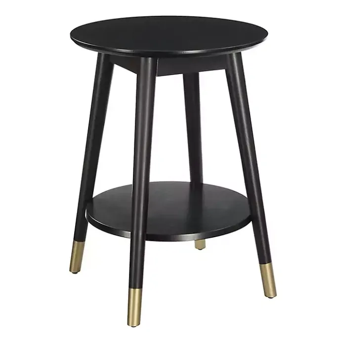 Update your furniture with the modern design of this Mia Round Black Accent Table. With a chic look and subtle, golden details, this table will put style and function beside your sofa or bed!