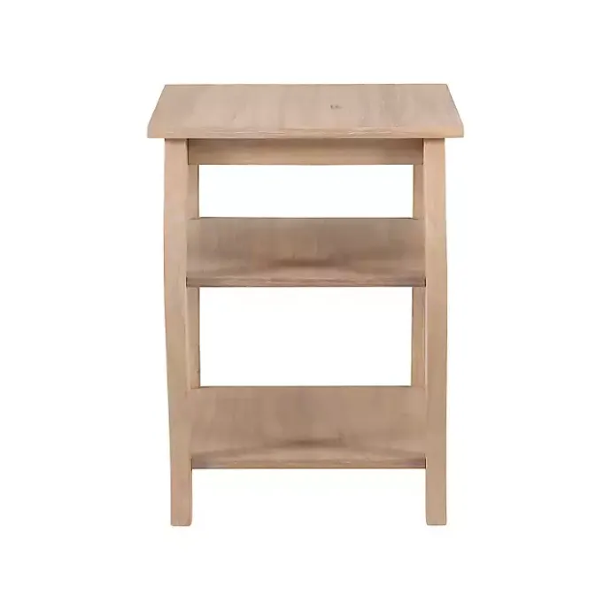 Update your space with the unique, modern design of this Natural Prismatic Wood Accent Table. With its sleek black finish and multiple shelves, it’s a beautiful way to add storage to your living room or bedroom!