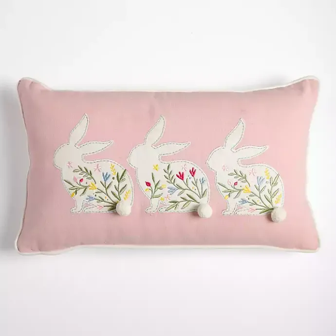Add festive flair to your living room or bedroom with our Pink Floral Bunny Trio Lumbar Pillow! This pillow features colorful details and classic Easter bunnies to accent your living room or bedroom!