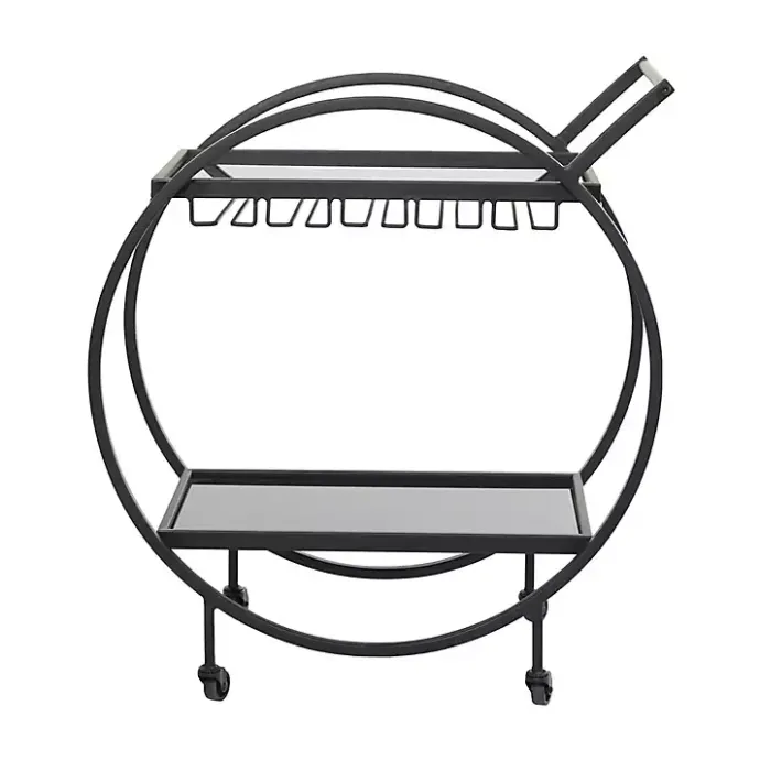 The Round Black Metal and Glass 2-Ter Bar Cart will gorgeously spotlight your favorite wines and cocktail essentials. Roll it throughout your gathering space at your next dinner party!