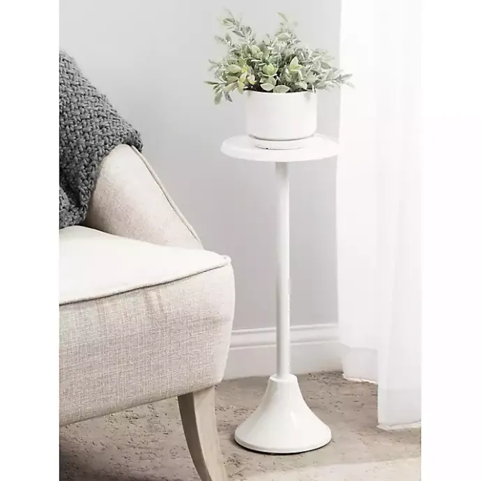 Decorate your home with the unique style of this Round White Metal Layla Accent Table. With a modern look and compact size, it’s perfect for displaying your favorite plant or holding a drink or two!