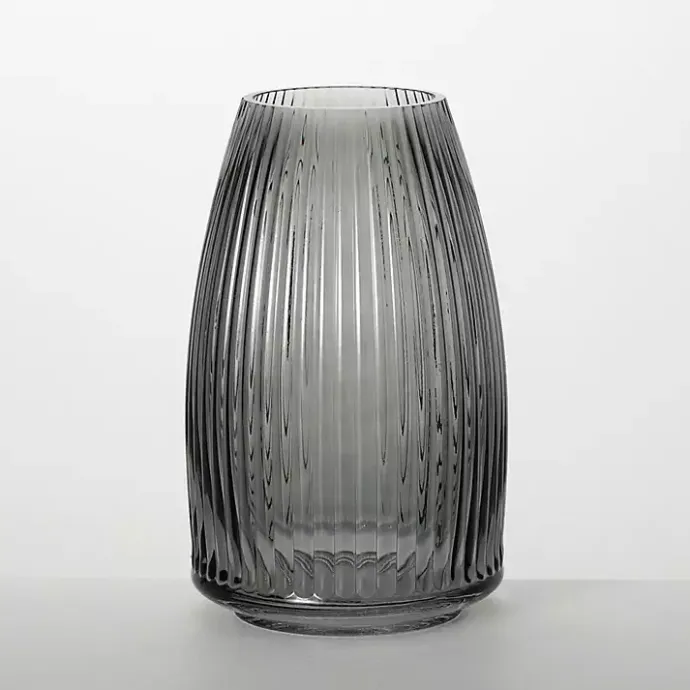 Add a modern elegance to your space with this Black Round Ribbed Glass Vase. Its chic, simple style is perfect for creating a beautiful floral centerpiece!