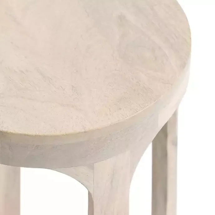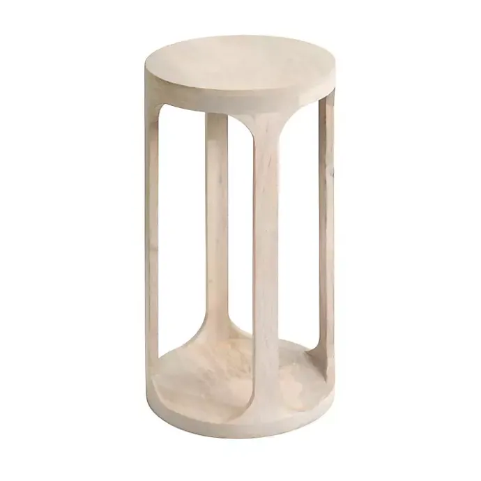 Add a delightful accent to your home with this Round Whitewashed Wood Dani Accent Table. Wooden slats give this table an arched openness that adds unique dimension, making it a one-of-a-kind display piece!