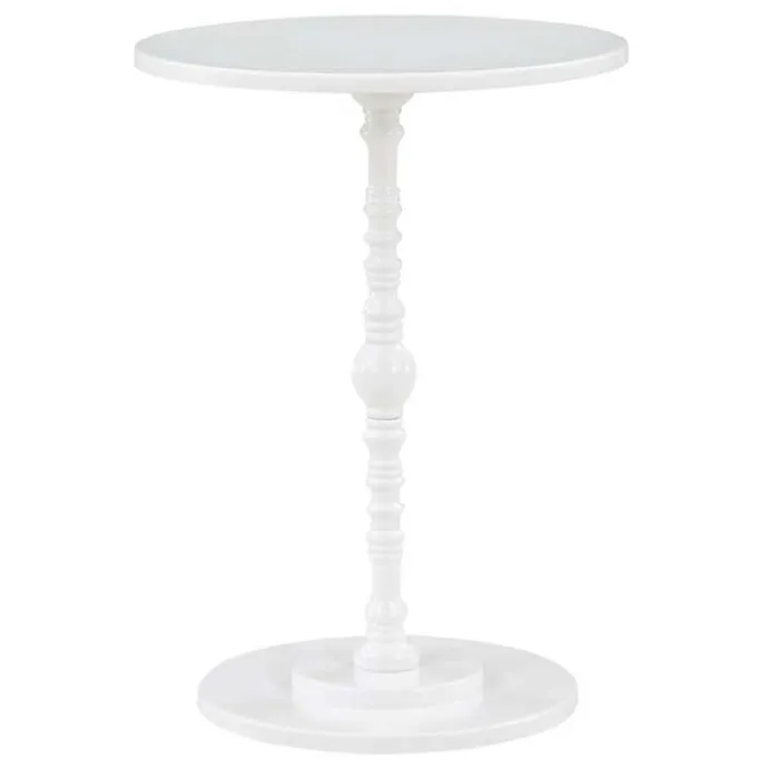 Featuring a beautifully sculpted spindle base, this White Santel Spindle Accent Table will bring a timeless sophistication to your space that complements both traditional and modern decor! Its sturdy and stylish construction is perfect for placing beside your sofa or bed.
