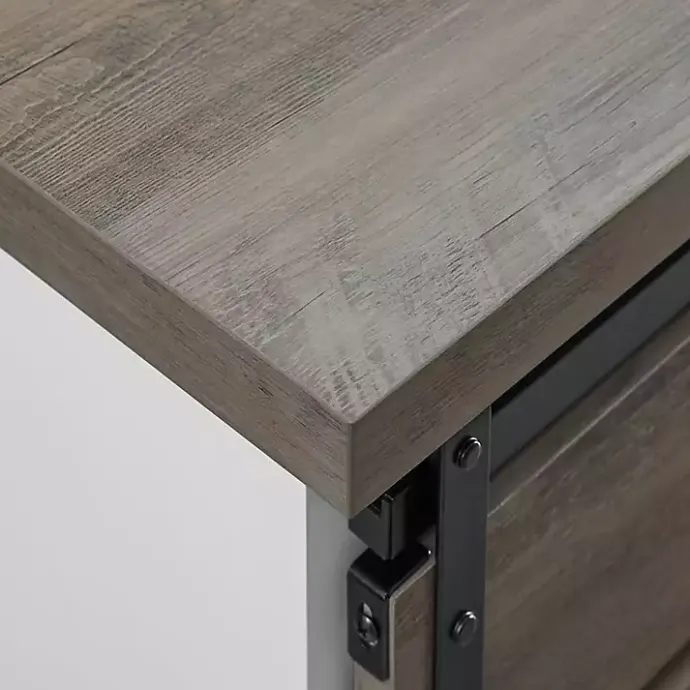 - Gray wash tabletop and barn door finish