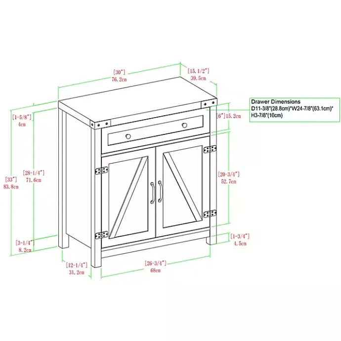 - One (1) barndoor cabinet with two (2) adjustable shelves inside