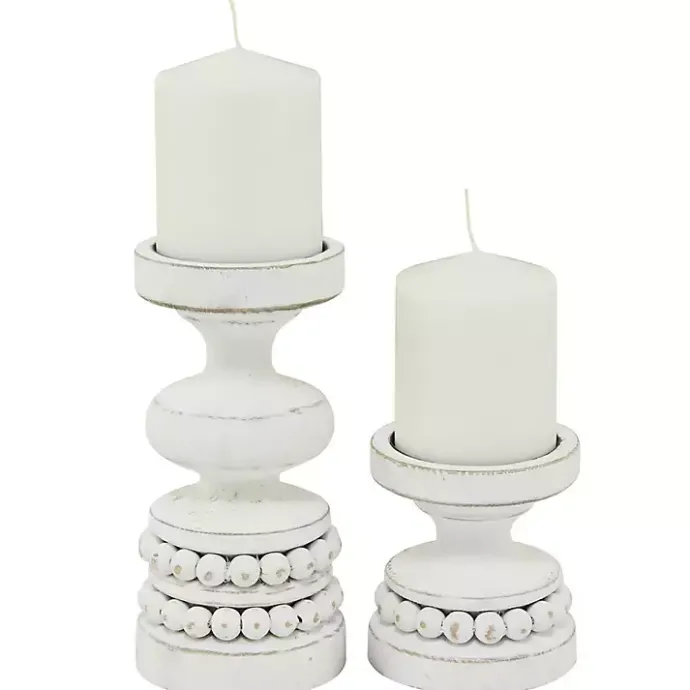 Our White Wood Beaded Pillar Candle Holders are perfect accent pieces for a modern farmhouse-style home! The distressed whitewash and beaded features give these holders a rustic charm that you’ll love for your candles!