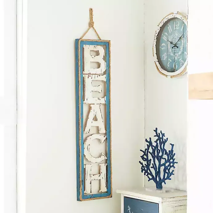 With a simple white and teal typography design, our Wood Cut-Out Beach Hanging Wall Plaque is an excellent accent piece for your home. You’ll love the distressed cut-out letters!