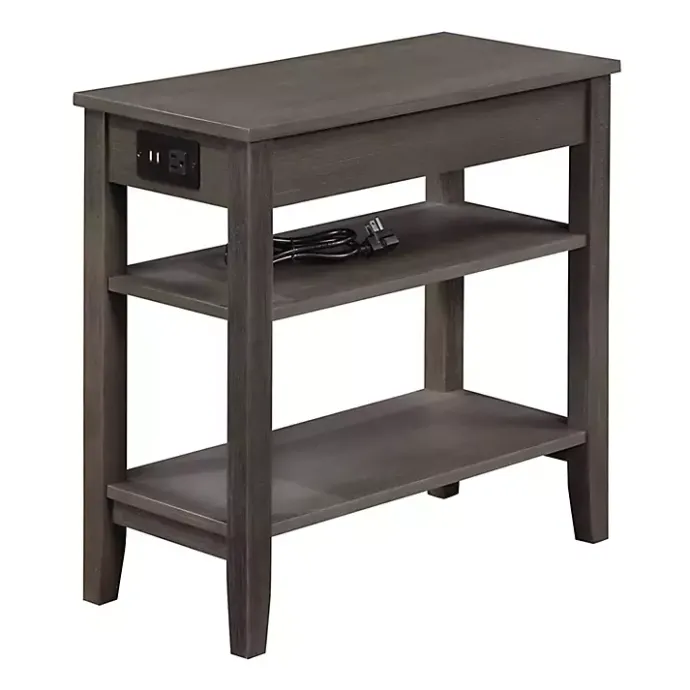 This Gray 2-Shelf Charging Accent Table allows you to easily charge your electronics from the comfort of your sofa or bed. Its simple, yet convenient design makes it a useful addition to any space!