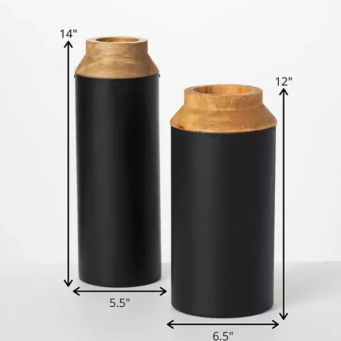 Give any space a sleek, modern touch with these Black and Brown Wood Vases. They’ll look lovely on their own or filled with faux flowers or greenery!