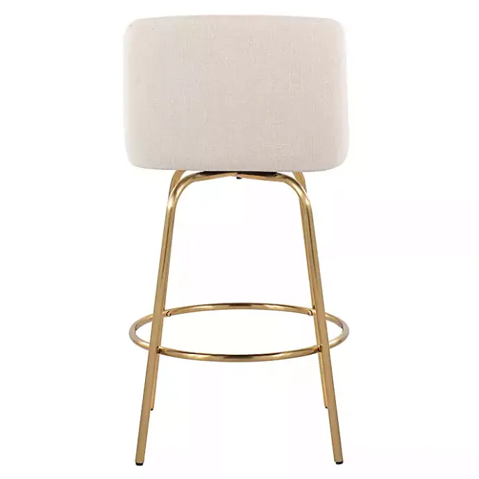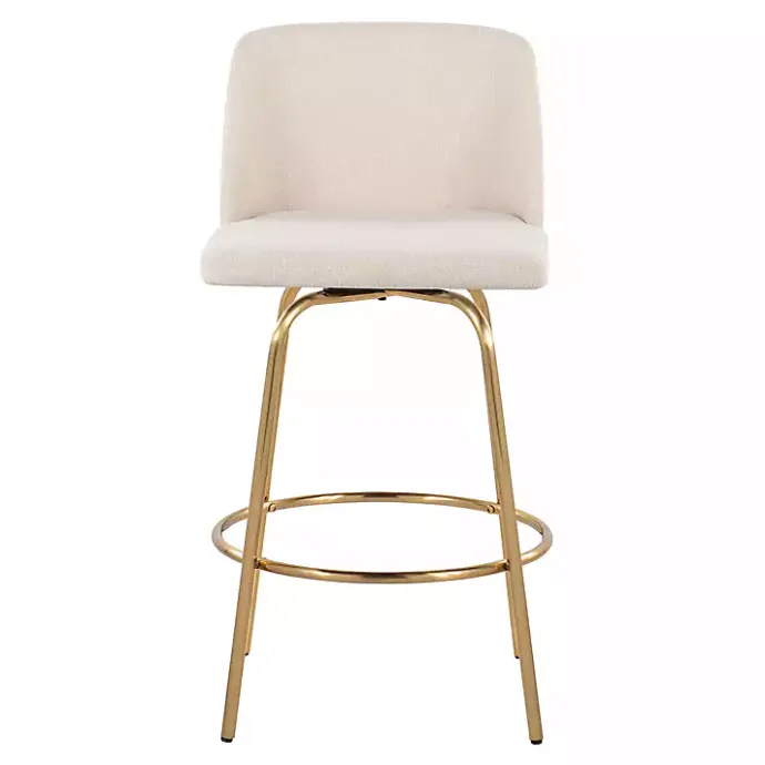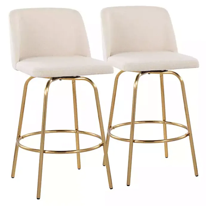 Spending time in the kitchen will feel a little more luxurious with the set of Cream Torino Gold Leg Counter Stools. The curved legs and padded, swivel seats will bring comfort and glamour to your kitchen island.