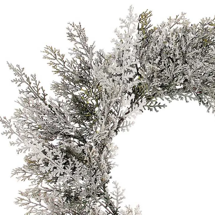Complete your winter wonderland with a fresh-looking touch of greenery! This Frosted Cedar Christmas Wreath will look perfect on your front door or above a mantel.