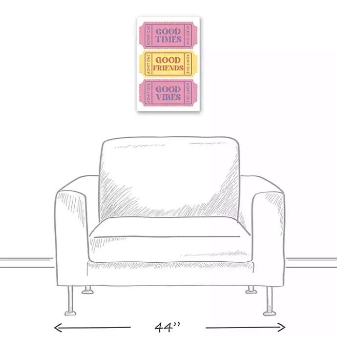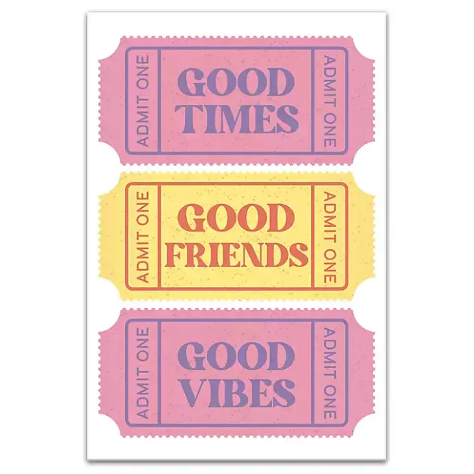 Let the good times roll with this Good Vibes Ticket Stub Canvas Art Print! This cute and colorful print will keep your space feeling positive and bright.