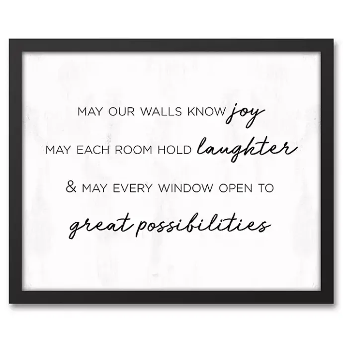 - Features the text “May our walls know joy, may each room hold laughter, & may every window open to great possibilities.”