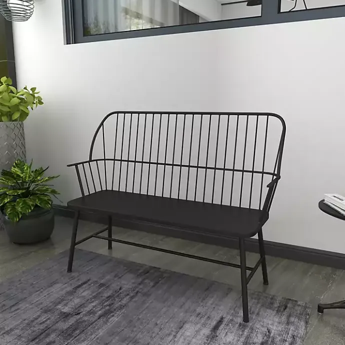 This modern and stylish bench will be the focal point of any well-decorated outdoor space. The Black Metal Slatted Back Outdoor Bench will look incredible on your porch or pool deck.