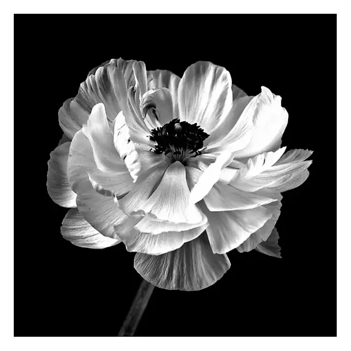 Our Noir Ranunculus Floral Giclee Canvas Art Print features a monochromatic image of a blossoming flower! You’ll love this print hanging amidst your modern décor!