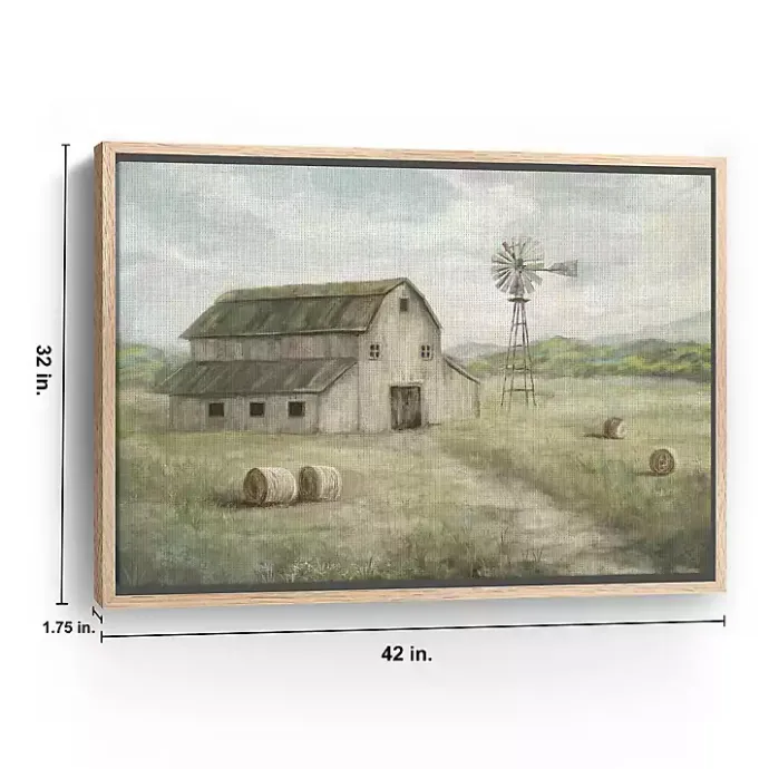 Featuring a quaint landscape in muted, earthy tones, this Peaceful Farm Oak Framed Canvas Art Print captures the pastoral stillness of life on the countryside.