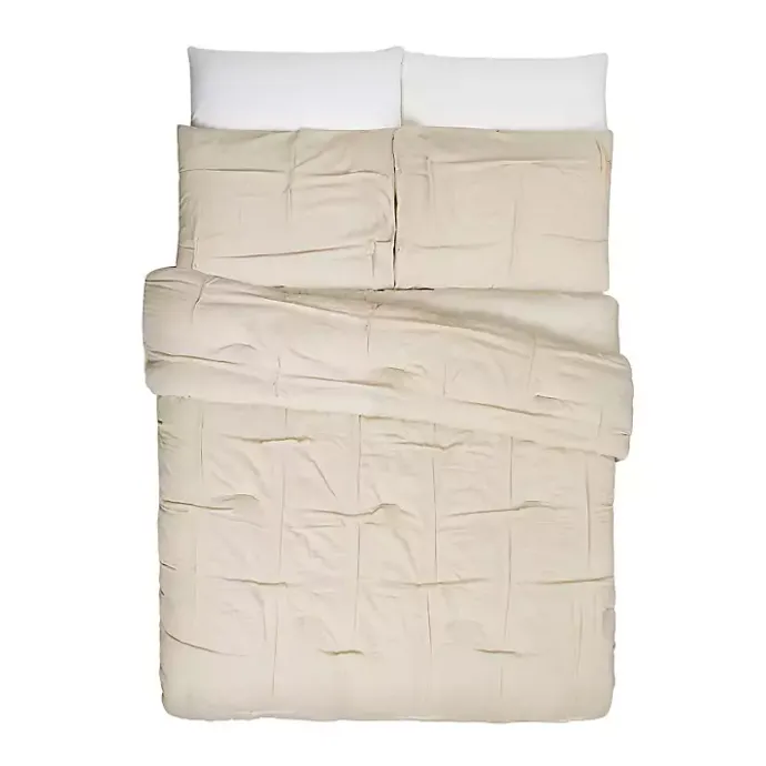 Update your bedroom with the modern sophistication of this Tan Riley Pleated 3-pc. Full/Queen Comforter Set. Its solid, neutral design will elevate any decor style!