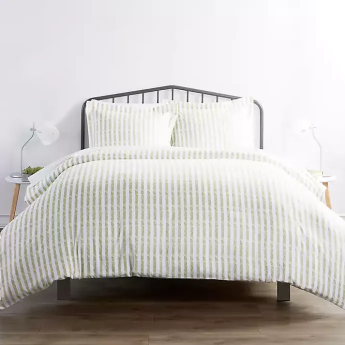 Give your bedroom a contemporary, coastal look with our super cozy Sage Rugged Stripes Puffed King 3-pc. Duvet Set! You’ll love its timeless design and comfortable cotton construction.