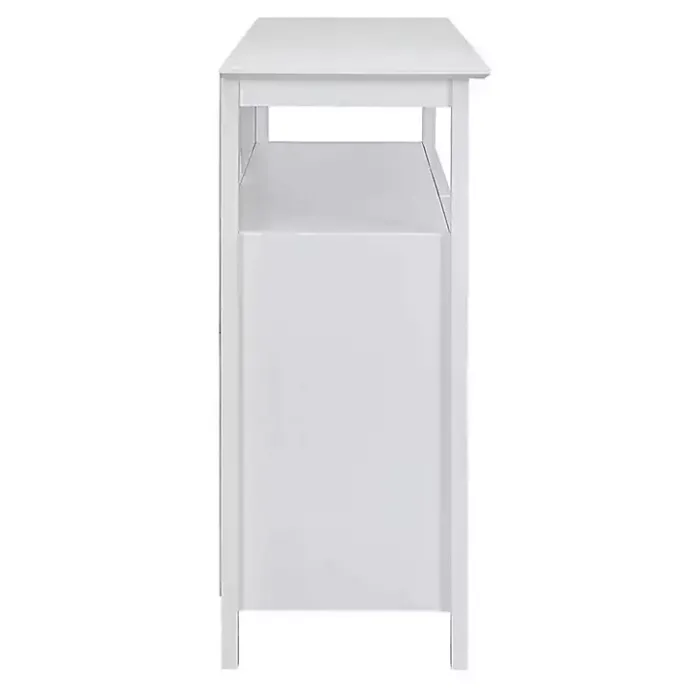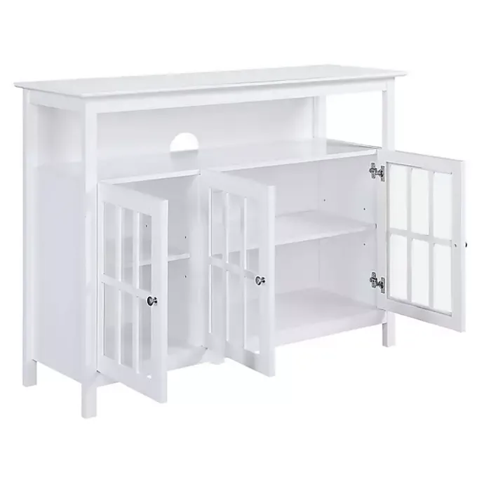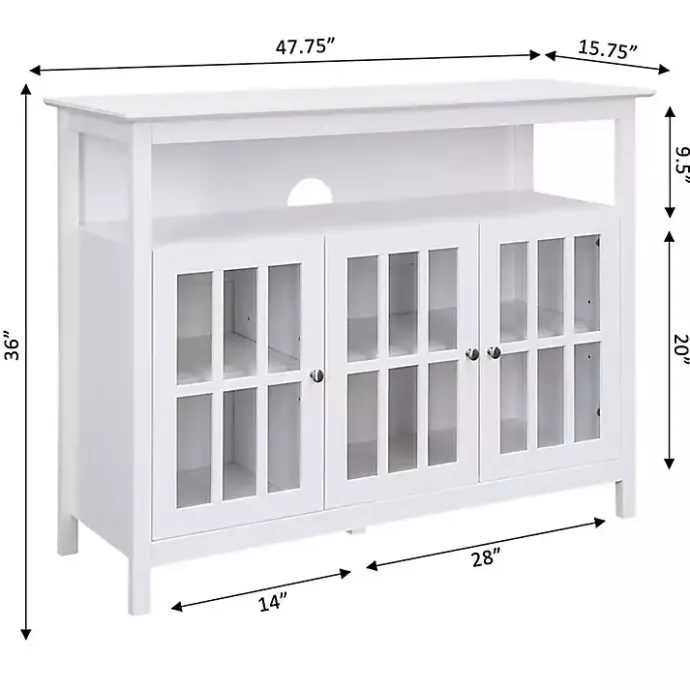 Upgrade your living space with this White Tiered Deluxe Cali Media Cabinet! With plenty of storage space and a windowpane design on the cabinet doors, this cabinet is perfect for a traditional style home!
