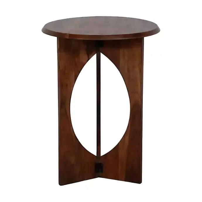 Refresh your space with this Walnut Cut-Out Round Accent Table. Its unique, eye-catching design will instantly elevate your home with style and sophistication.